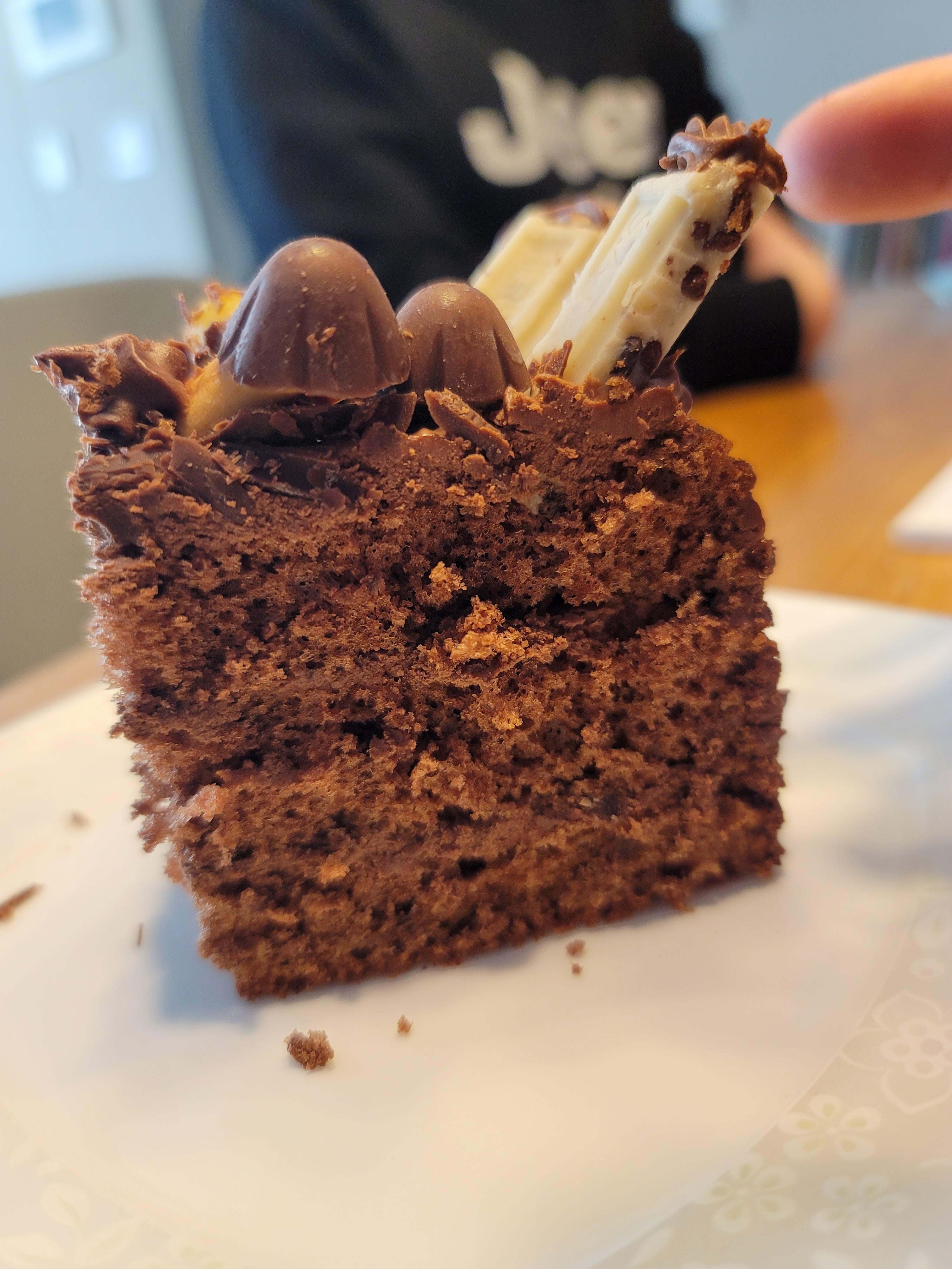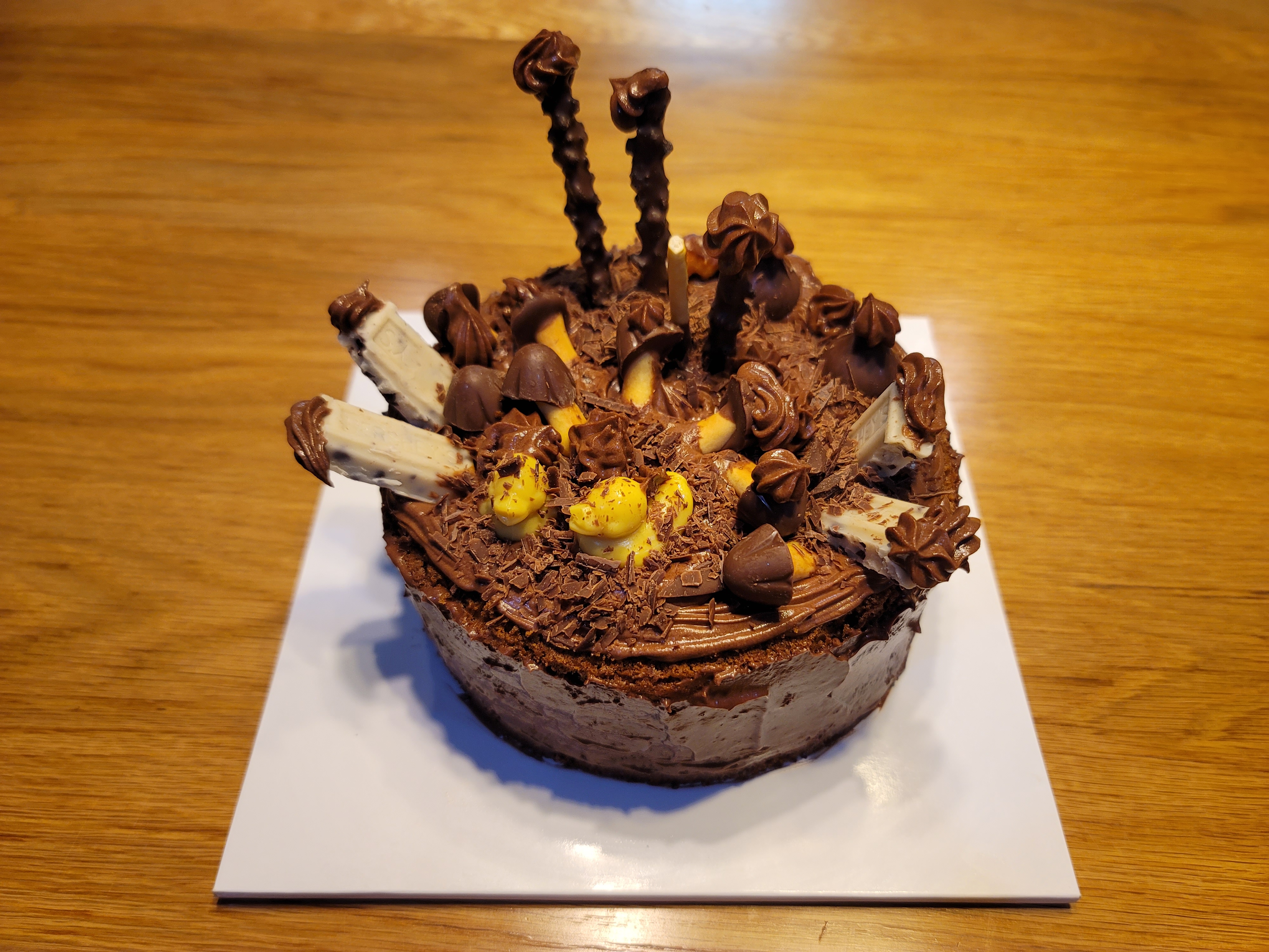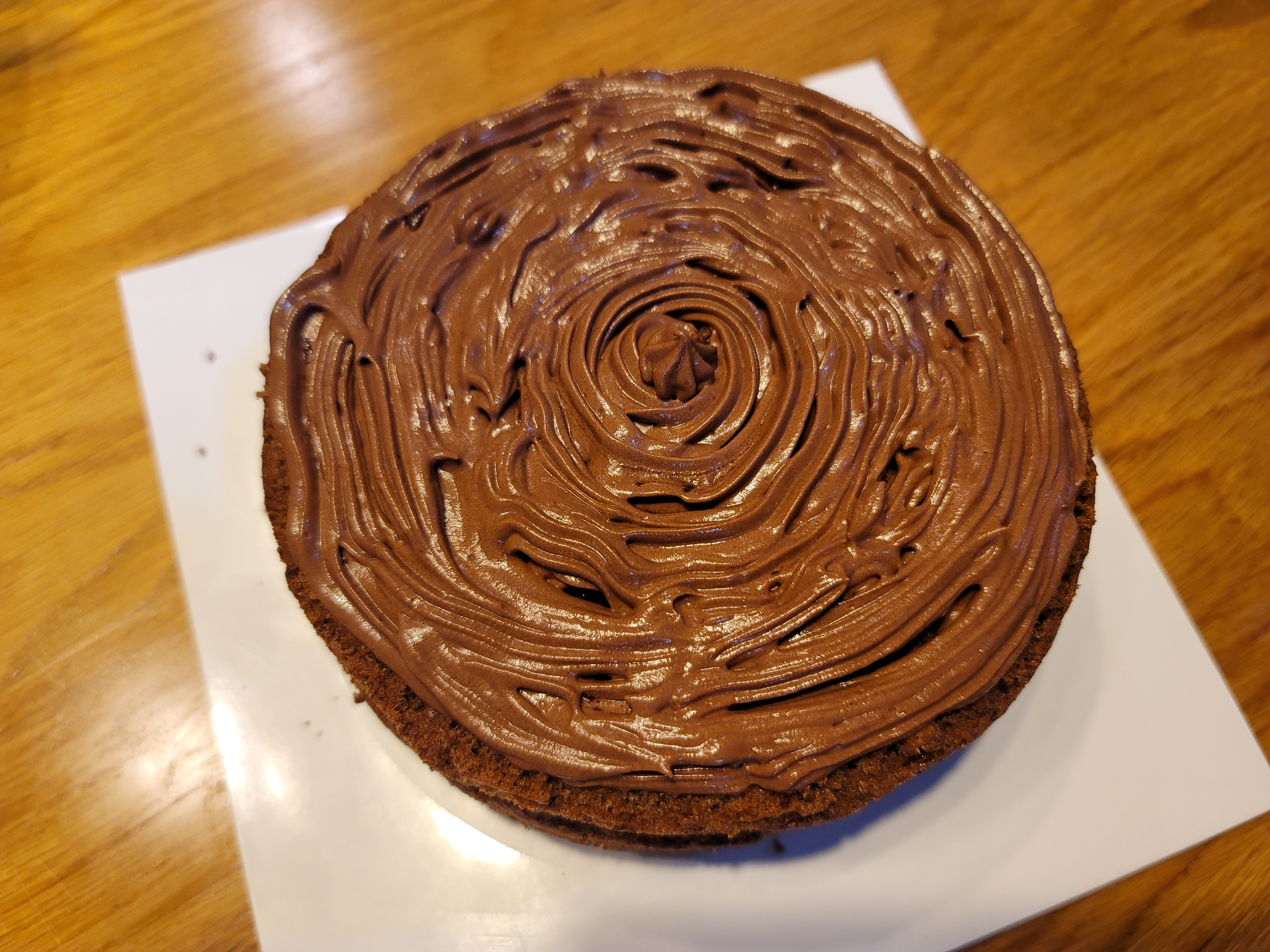 초코크림까지 바르고 완성한 케이크는 다음날 먹었다.